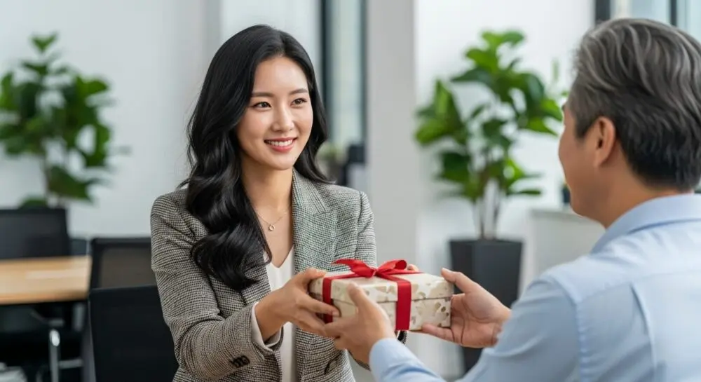プレゼントを渡すタイミングは、最終出社日の当日が基本です。業務の邪魔にならないよう、朝の挨拶のときや休憩中、帰り際など、相手が少し落ち着ける時間を見計らって渡しましょう。意外と忘れがちなのが、持ち帰り用の紙袋を準備しておくこと。特に大きめのプレゼントを贈る際は、相手が困らないように、さっと渡せる綺麗な紙袋を用意しておくと「気が利くな」と思ってもらえますよ。